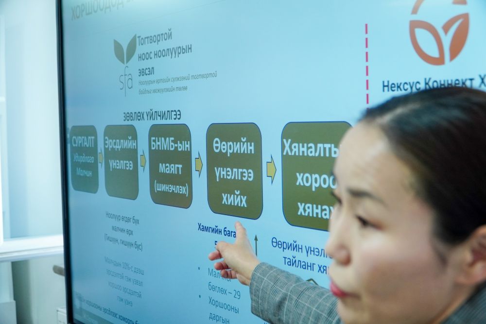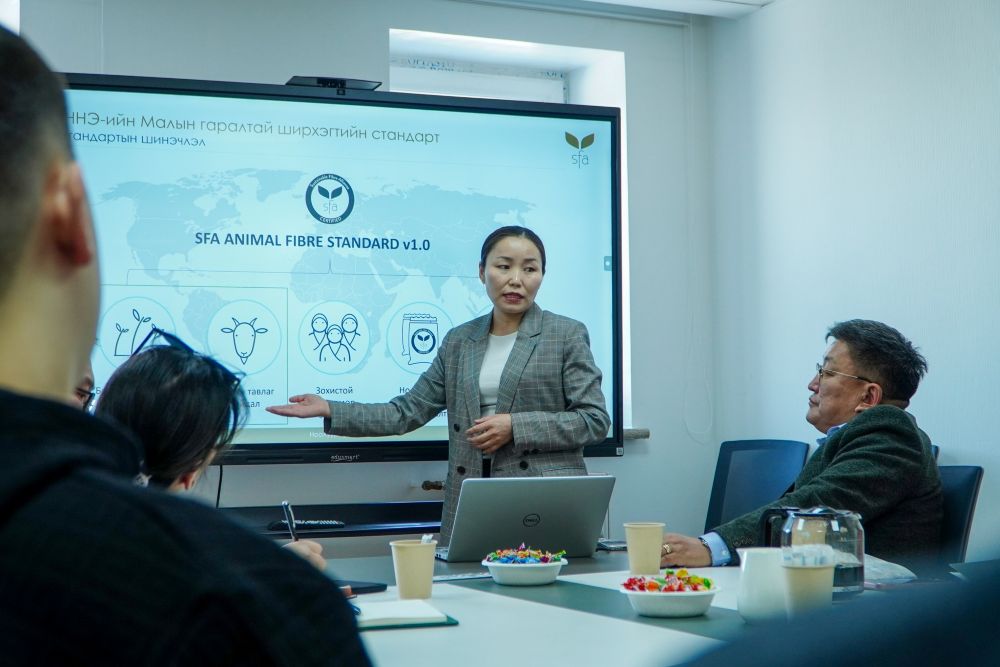 Representatives from SFA Member organisations, including Khanbogd Cashmere, Nomgon Cashmere, Monital Cashmere, Gobi Aigar, Jin Corona, Urnukh Golomt, Goyol Cashmere, and Top Shine, participated in the training. They received information and exchanged views on the implementation of the SFA standards, sustainable production practices, and ways to improve supply chain transparency.